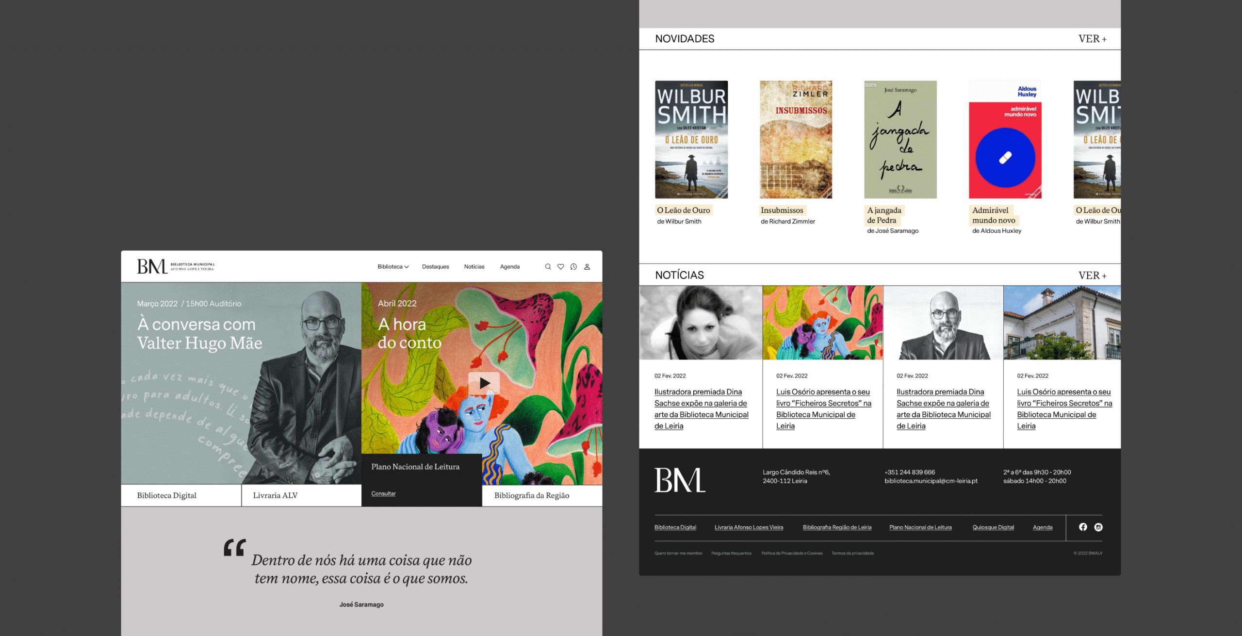 MD3 STUDIO developed the rebrand of the visual identity, graphics, communication typology, and website for the municipal library BMALV, located in Leiria, Portugal.