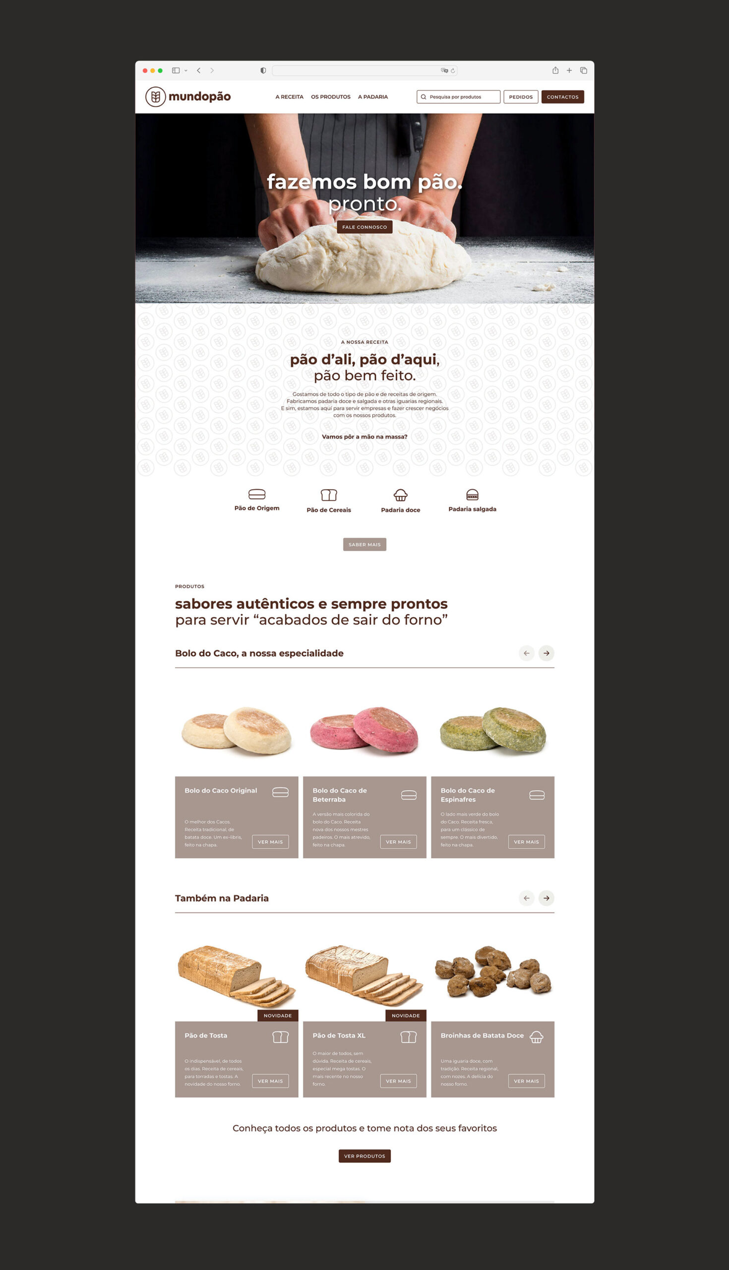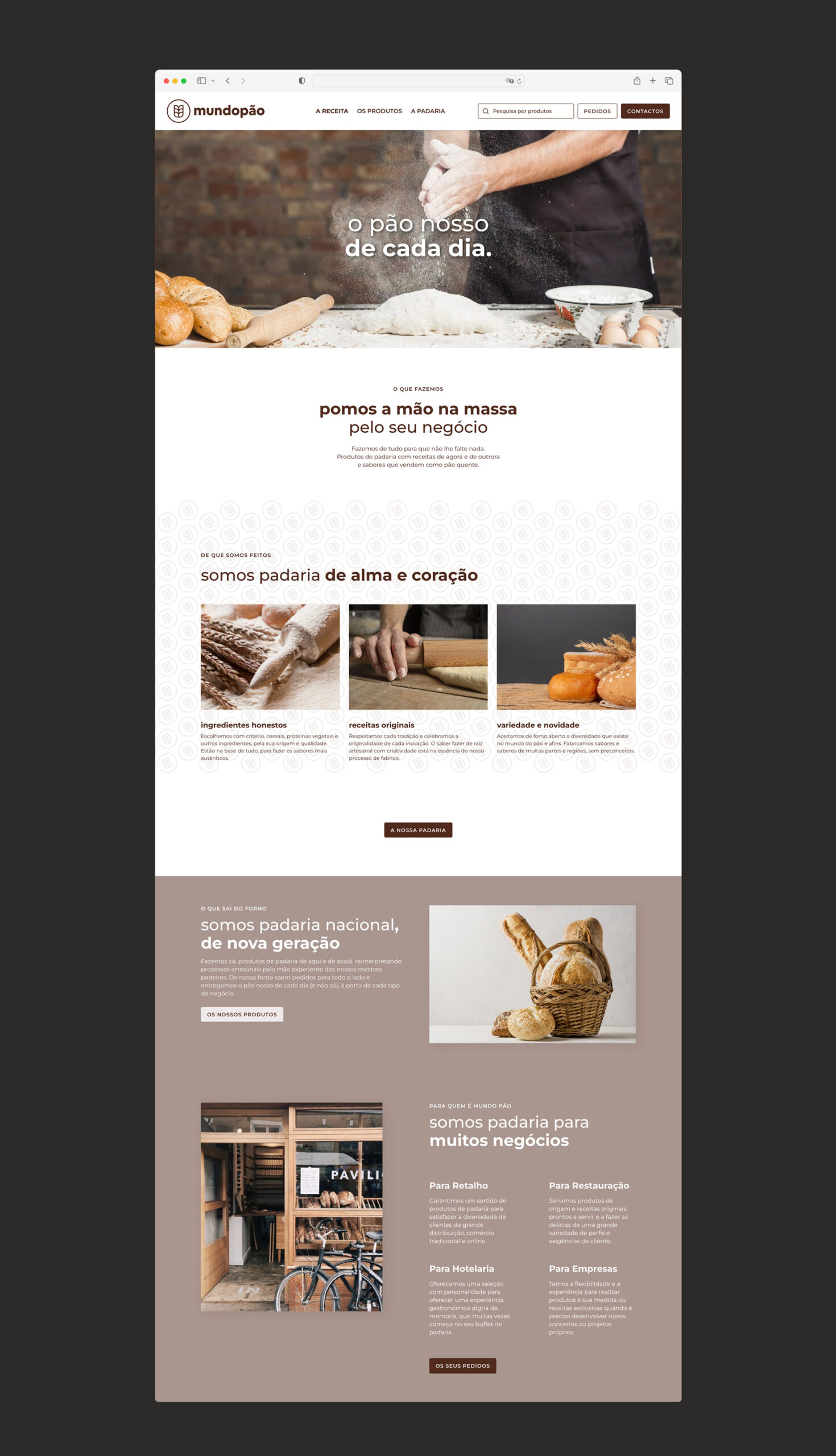 Mundopao.pt is a new-generation national bakery, that makes baked goods, reintroducing artisan processes, for retail businesses, restaurants, hotels and companies of all kinds.