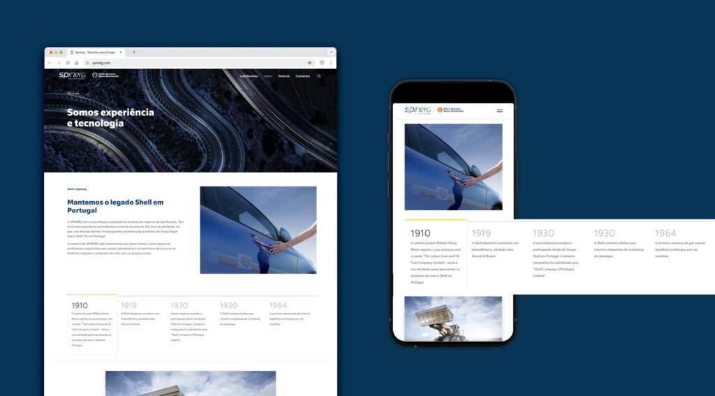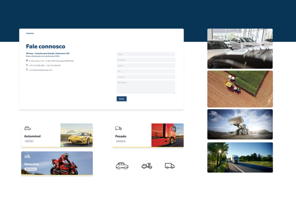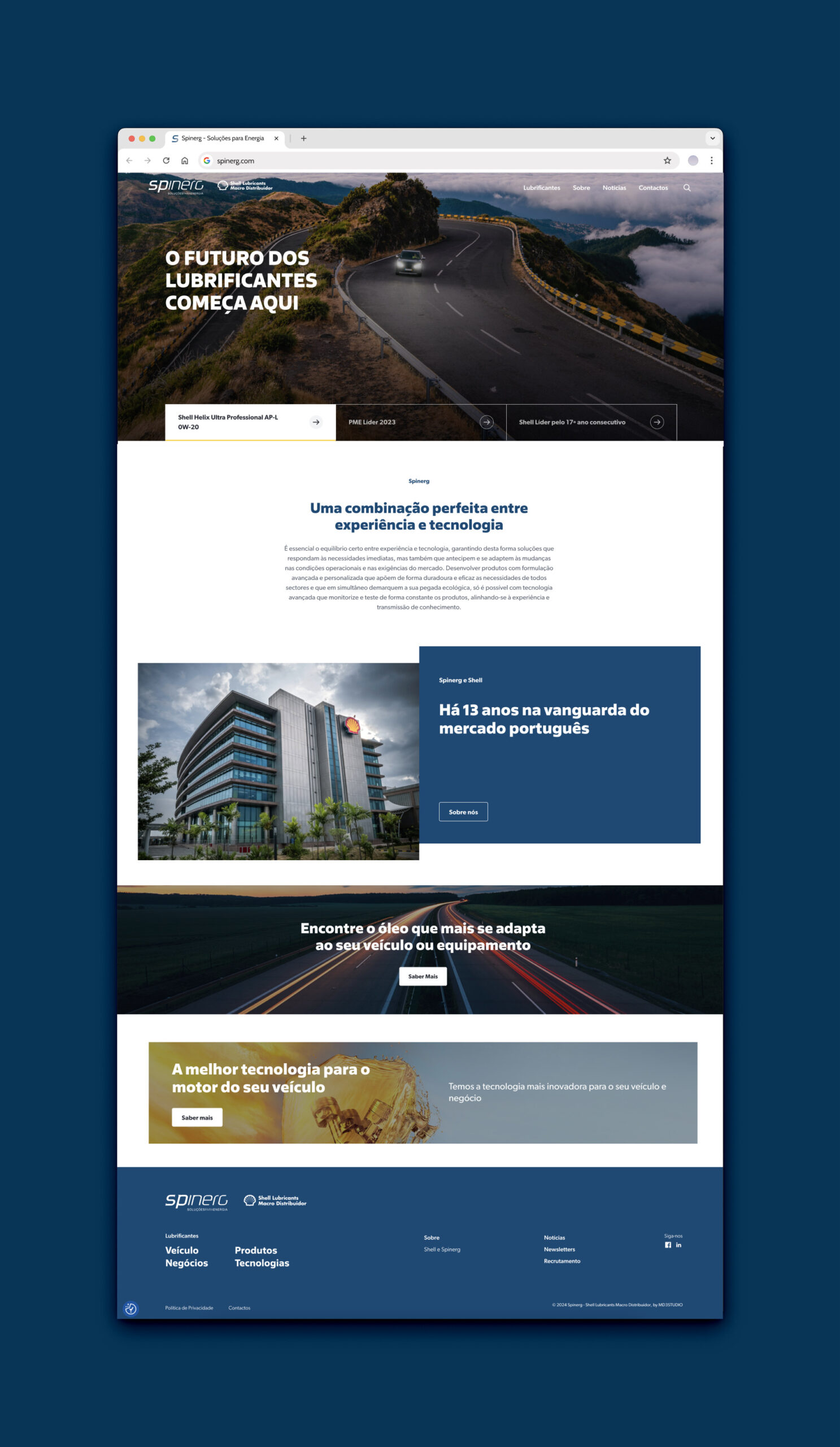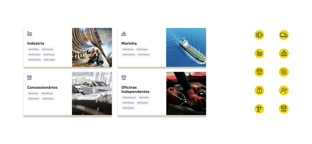 Blue, Spinerg’s main colour, is used in greater proportion and prominent blocks, while yellow, which represents Shell, is used secondarily, adding a creative touch through icons and lines.